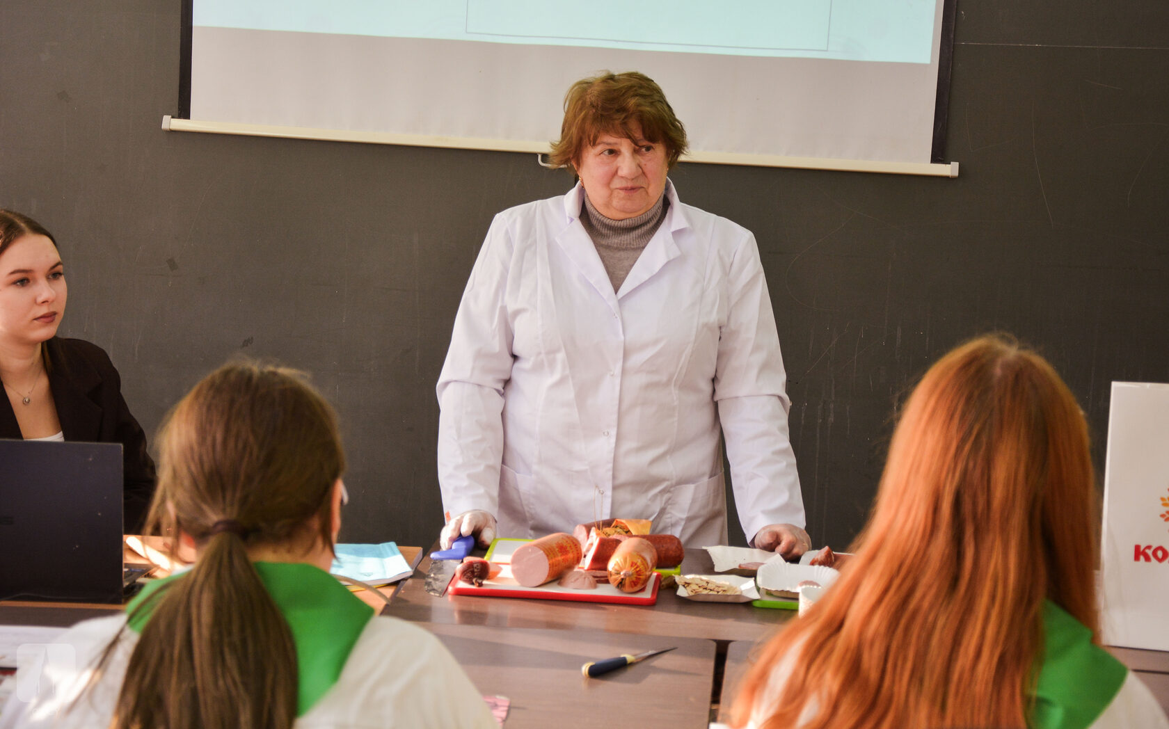 Главный технолог СПК «Коляда» Лидия Ивановна Цымбалий в рамках муниципального фестиваля «АгроФест: Путь к профессии» провела для учащихся школ округа мастер-класс «Определение качества мясной и колбасной продукции органолептическим методом»